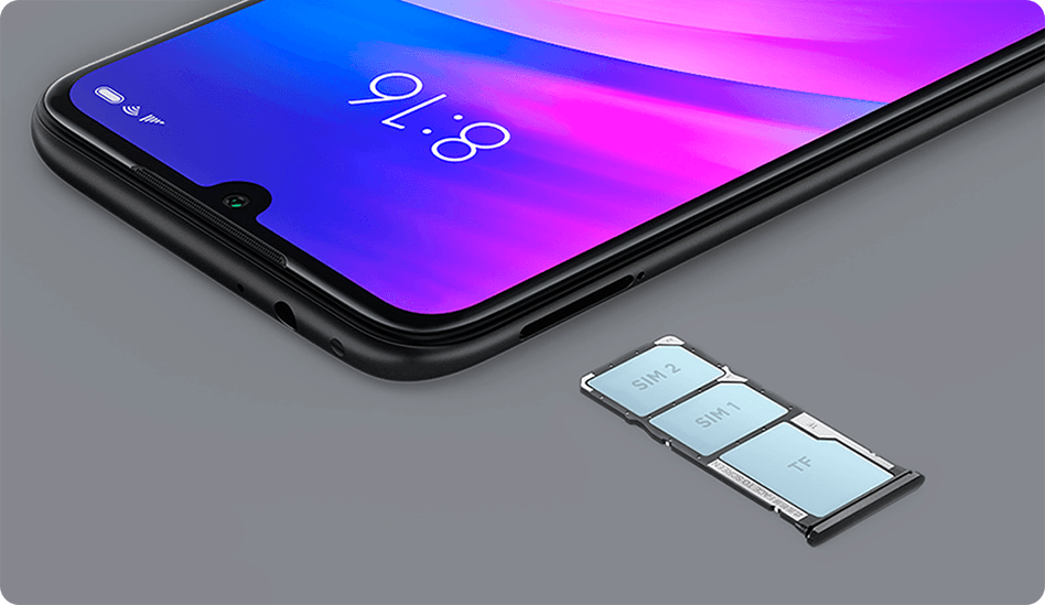 Redmi 7 враховує ваші вимоги до повноцінного спілкування. Саме тому він має два слота під SIM-карти і ще один слот під карту Micro SD. Максимальна ємність карти пам'яті обмежена 512 Гб, а це означає величезні можливості для зберігання текстових документів, робочих файлів, фото і відео контенту.